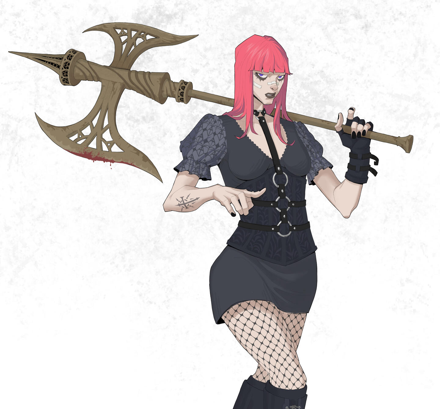 B- Description of your commission (Ex: character race, personality, pose, hair, age, clothes, armor, equipment, weapons).